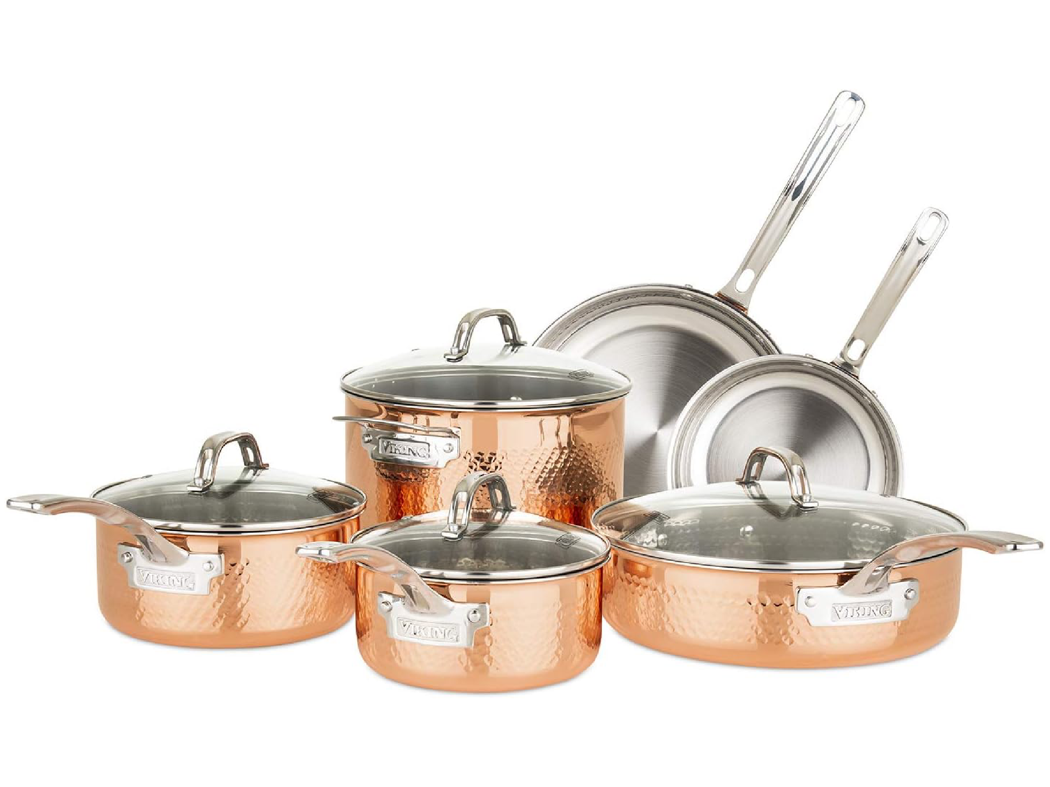 - Best for heat conductivity – Viking 3-ply hammered copper pots and pans set: $549.99, Amazon.com