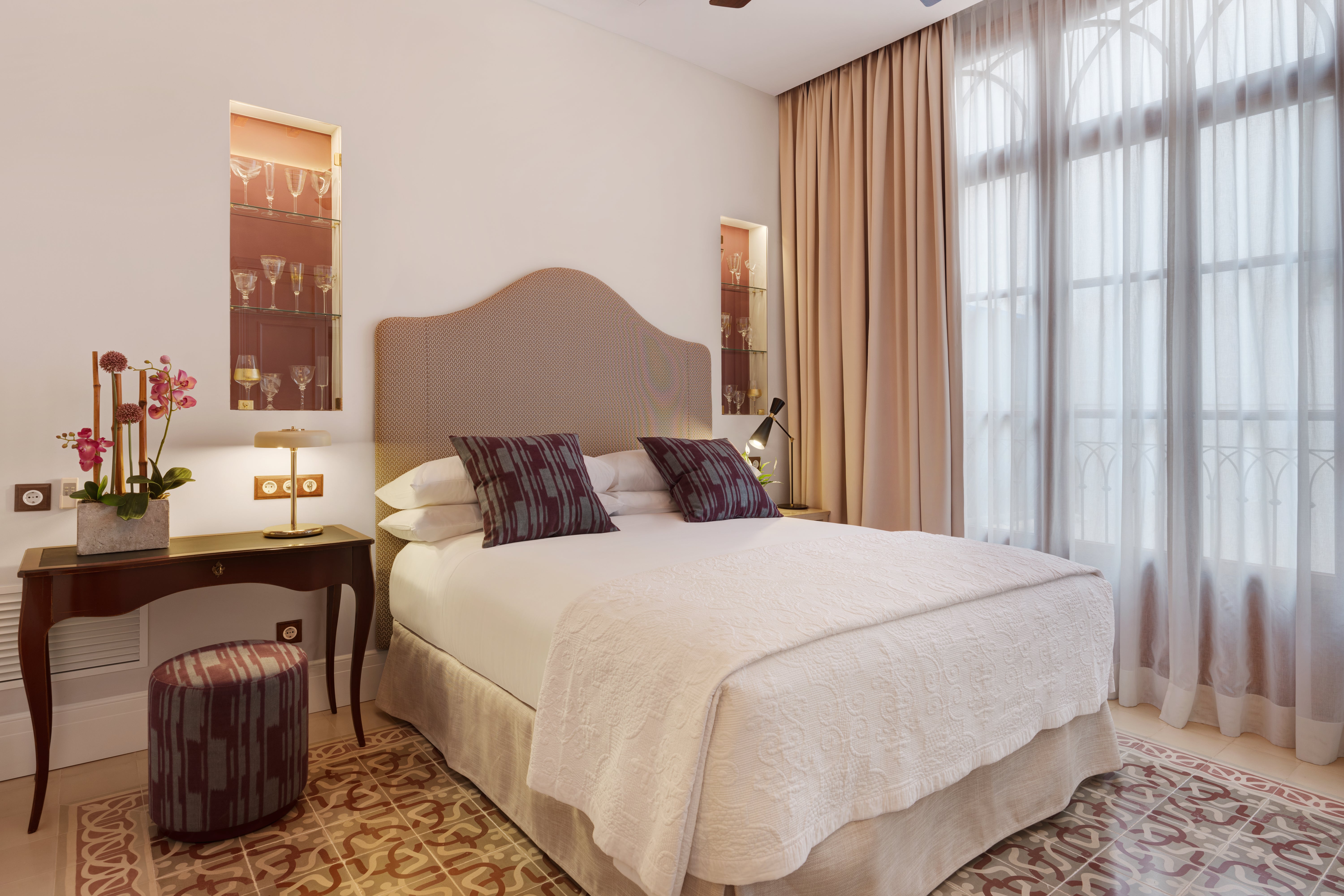 Tranquillity sets in as you ascend the curving 19th-century staircase, past the 16 extra-spacious rooms, with taupe and grey accents and contemporary art pieces, alongside luxury touches like GHD hair tools and a sleepy tea turndown service. On the top floor, a pool is surrounded on one side by the greenery of the rambla and on the other by gorgeous views of the city and sea, and it’s the perfect spot to spend spritz-filled afternoons with all-day poolside service. The torreón is the cherry on top, a spot to sit with your paramour or do a morning exercise class with the on-call trainer.