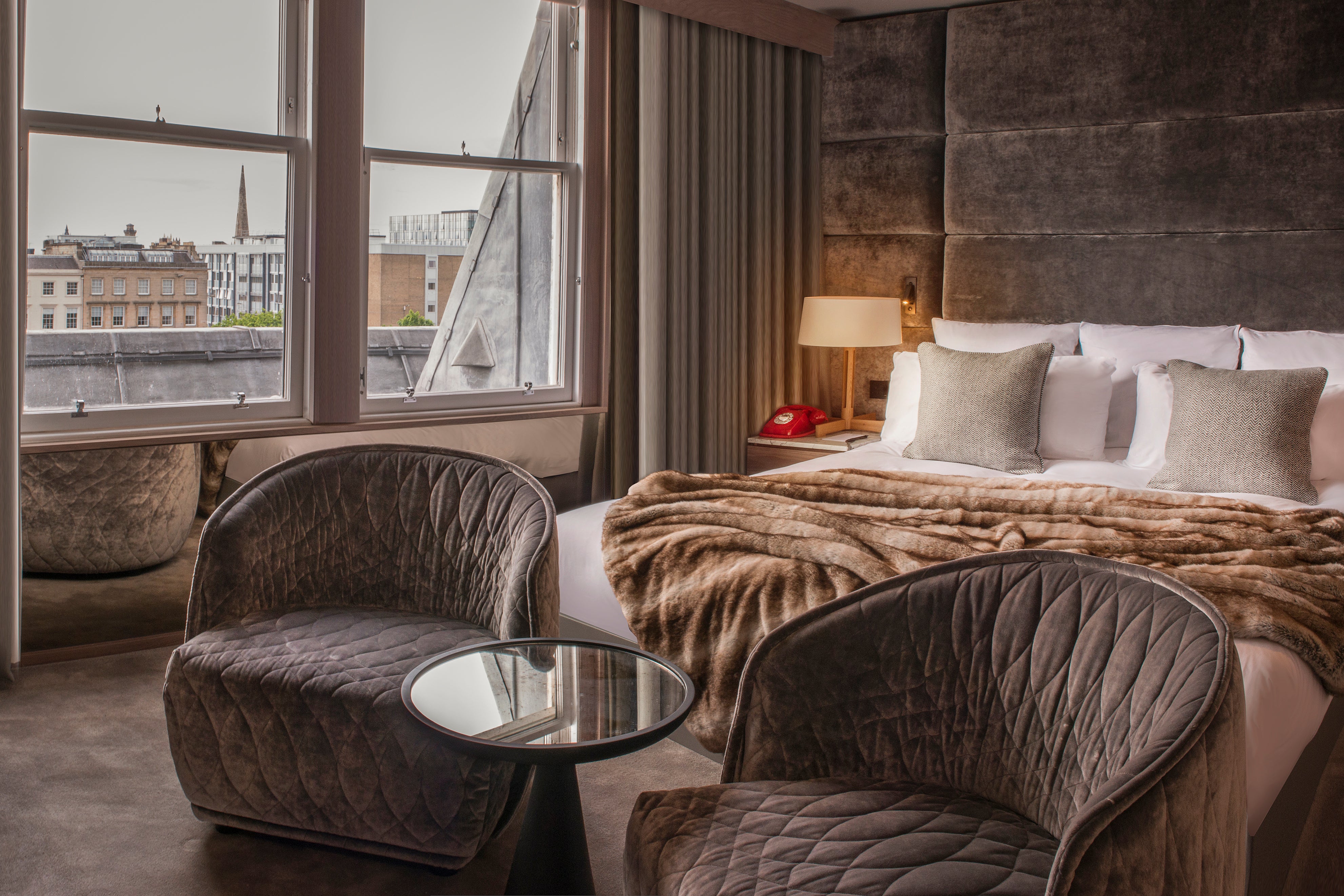 Housed in the former headquarters of the Royal Scottish Automobile Club, the Kimpton Blythswood Square is undoubtedly Glasgow’s grandest luxury option. It sits on Blythswood Square, which was once part of the city’s red-light district. These days, the square is far more salubrious, as is this glorious luxury hotel. Think lashings of marble, mood lighting and plush furnishings at a hotel that seamlessly weaves the old world with the ultra-modern. Unusually for Glasgow, the Kimpton boasts a sizeable swimming pool, as well as a steam room and a jacuzzi in its excellent spa, which guests can frequent twice a day. And you will want to.