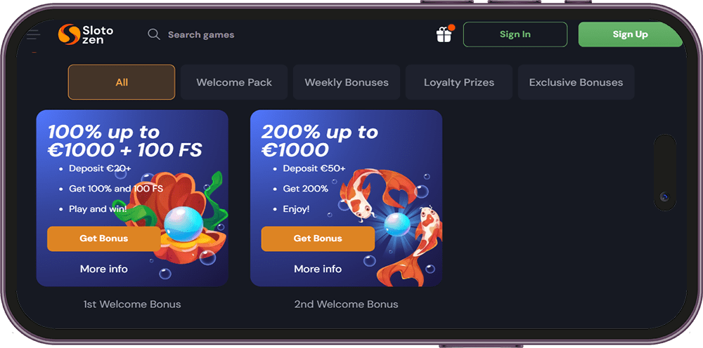 - Slotozen: Top bonuses with free spins