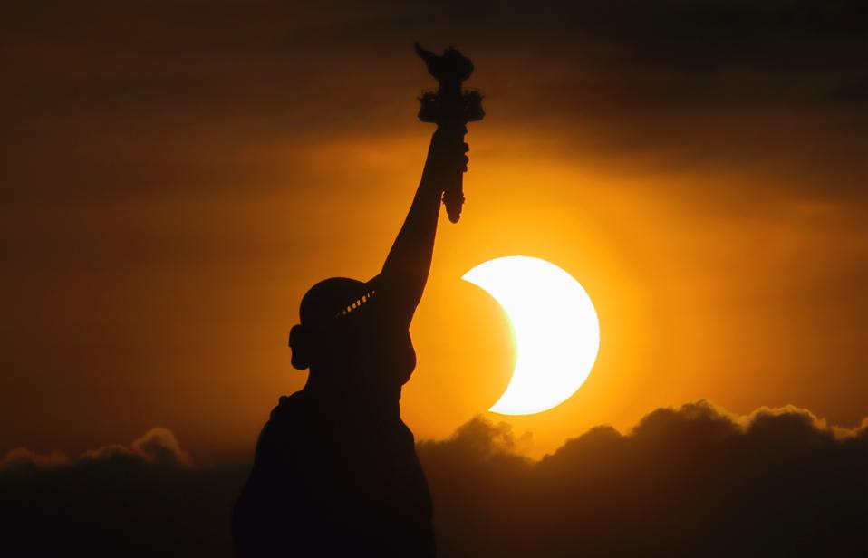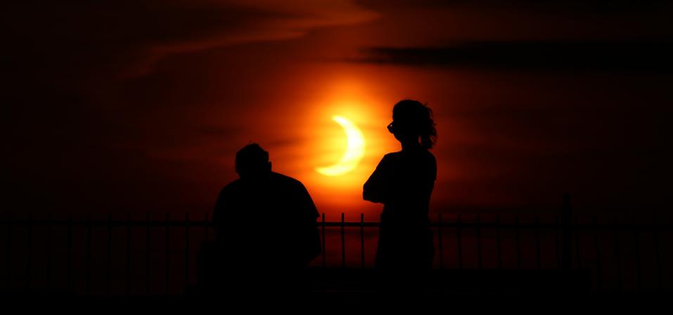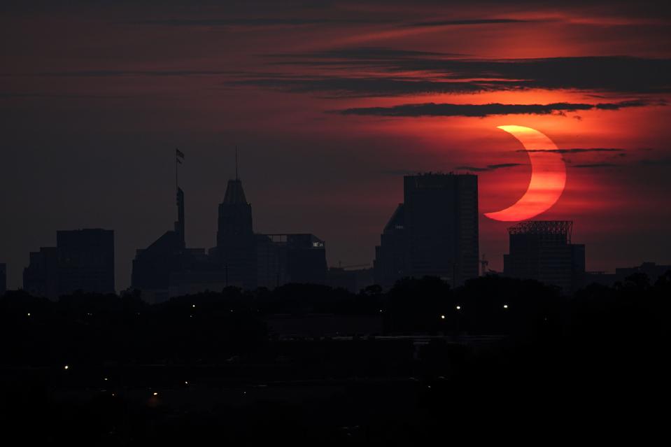 Those in New Jersey and New York arguably had an even stranger sight. In the moment that Sun rose, eclipsed, on the horizon it was possible to see two limbs of the Sun—the so-called “red devil horned” eclipse—poking above the horizon.