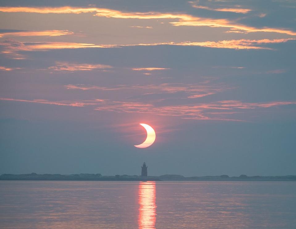 Northeast of that line a partially eclipsed Sun was viewed slightly higher in the sky. Early-risers lined the beaches of the Atlantic coast from South Carolina to Maine to try for a glimpse of an eclipse sunrise or even a “crescent sunrise.”