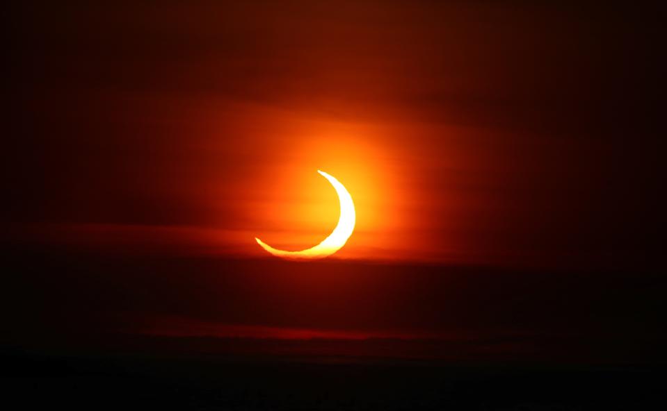 Travel restrictions meant it was virtually impossible for many to travel to see the rare “ring of light,” though there was some consolation for those in northeast U.S. states from where it was possible to see a rare “crescent sunrise” that was around 70-75% eclipsed.