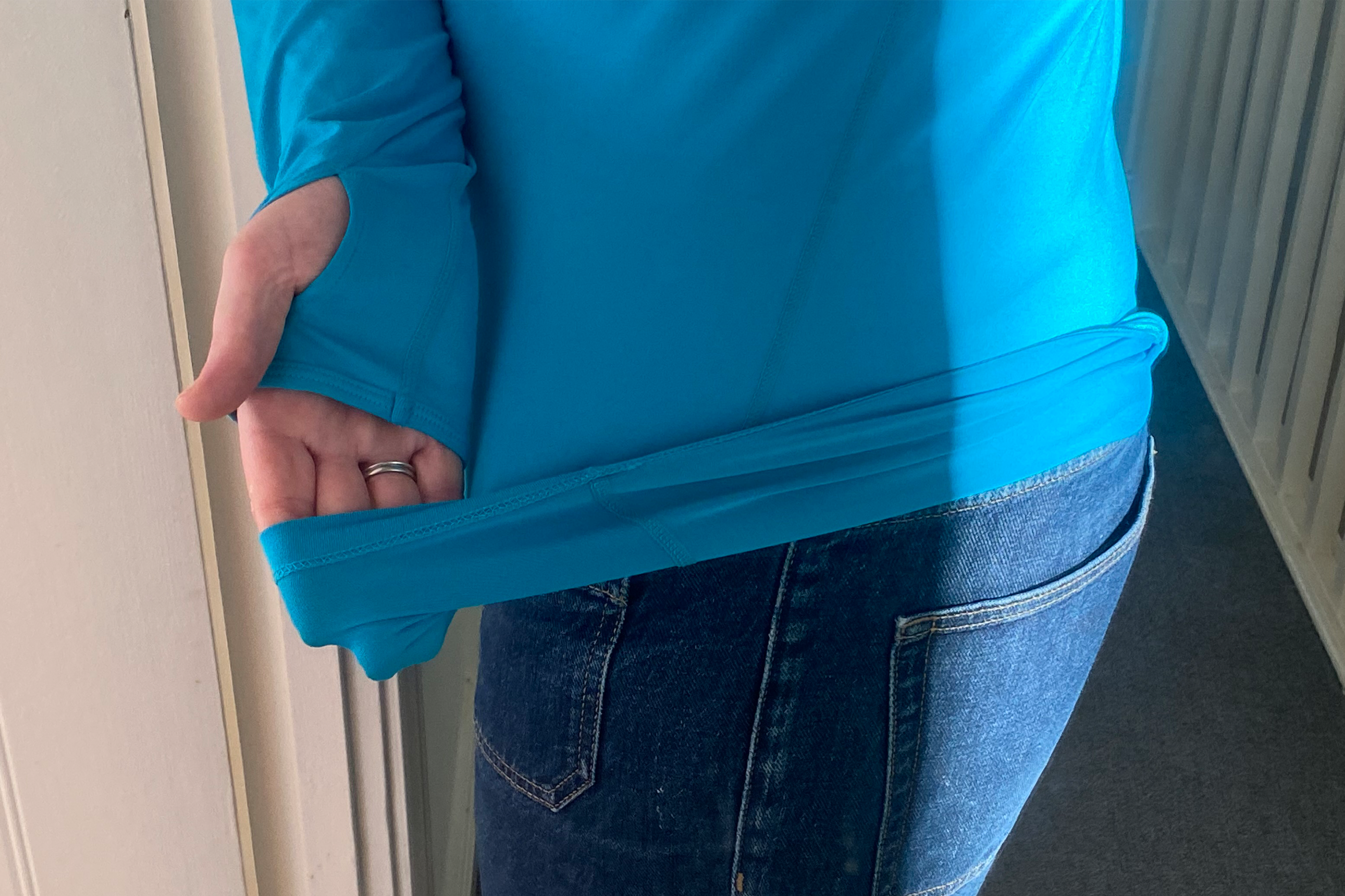 I loved the generous length of the sleeves too – cold wrists simply weren’t a possibility with this top, and its overall length prevented accidental builders’ bum-related incidents. Care-wise, it can be washed on a delicate cycle at no more than 30 degrees. I’m also pleased to report it was another top that dried incredibly quickly.