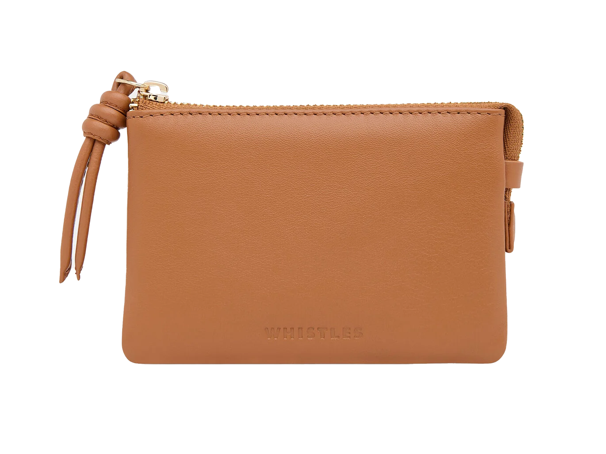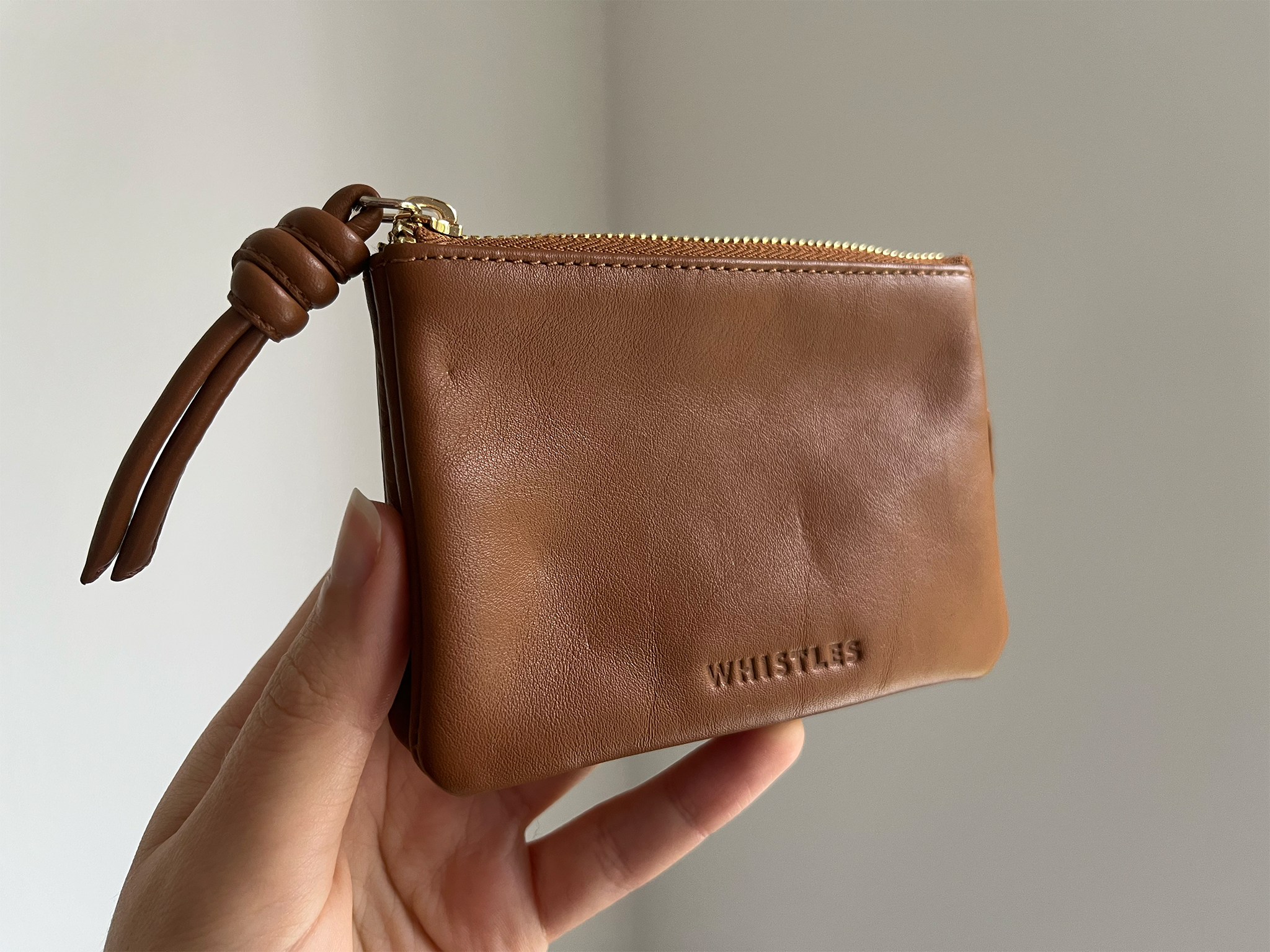 If you’re looking for a purse that’s more capacious and versatile than a card holder, but don’t want it to be bulky, consider this pocket-sized purse from Whistles. It’s simple and elegant in its design, with a knot on the zip as its defining feature, which also facilitates pulling the smooth zip, and is available in black or tan.