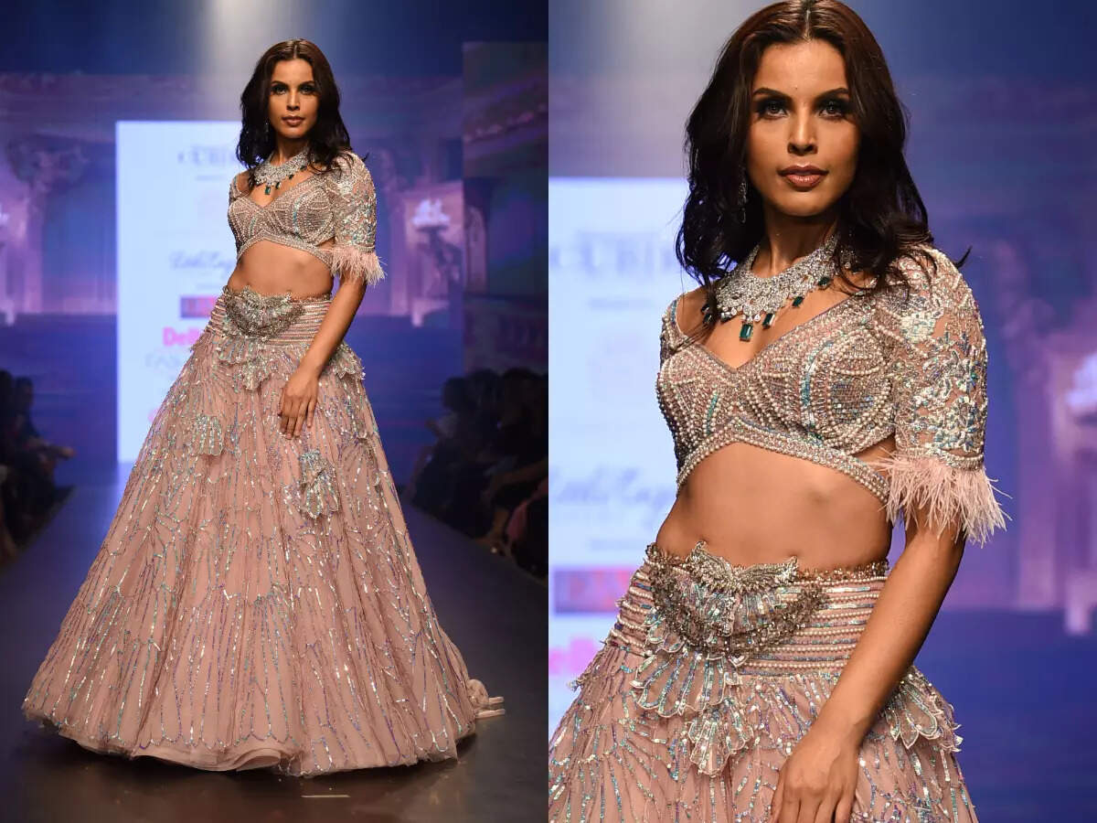 Anjalee & Arjun Kapoor in association with Diamond Cubik presented a renaissance inspired collection and this heavily embellished lehenga looked stunning.