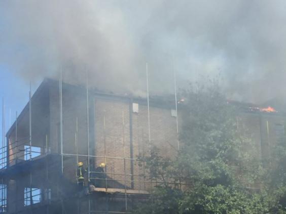 The flames engulfed the fourth floor and the entire roof of the waterside flats, which were under construction and reportedly on the market for up to £1m each.