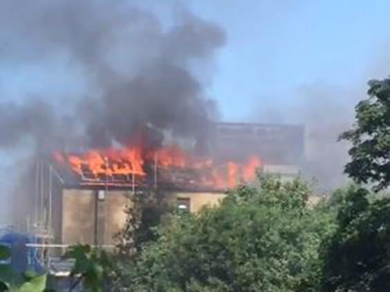 Huge plumes of smoke could be seen rising from the roof in photos and footage posted social media users including @IbrahimChsTV and @canterburygeeks.