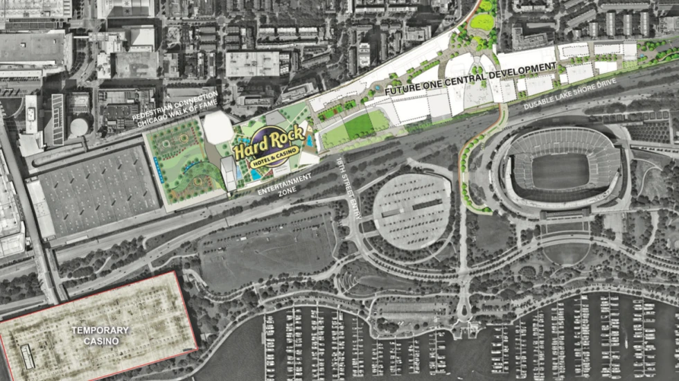 On its own, the casino would need approvals from the Illinois Department of Transportation, Metra, and the Metropolitan Pier and Exposition Authority, which manages McCormick Place. The Hard Rock site butts up against the north end of the sprawling expo complex.