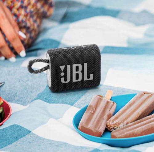 Bring the party wherever you go with this tiny, yet surprisingly powerful, mini Bluetooth speaker by JBL. It delivers rich, clear audio and solid bass wirelessly streaming from your phone, laptop, tablet, or any Bluetooth-enabled tech. Waterproof and dustproof, it delivers up to five hours of playback on a full charge.