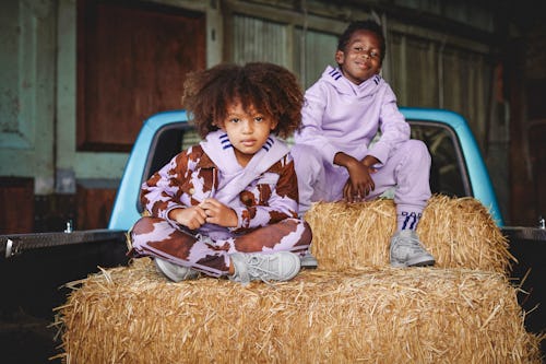 To keep up with any kids’ lifestyle, the childrens’ Rodeo capsule includes comfy basics like French terry hoodies and sweatpants, as well as activewear like blue and cow print sets. Windbreaker jackets and cropped tees offer a streetstyle twist to the kids’ clothing, which comes in colors like purple, blush pink, cobalt blue, and off-white and purple cow print.