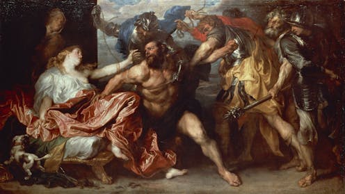 But the story of Samson is defined also by Samson’s failed search for companionship. Samson attempts to marry a Philistine woman who betrays his trust. Later, he famously falls in love with Delilah, a woman who learns the secret of his strength and has his hair cut, robbing him of his power and leading to his capture.