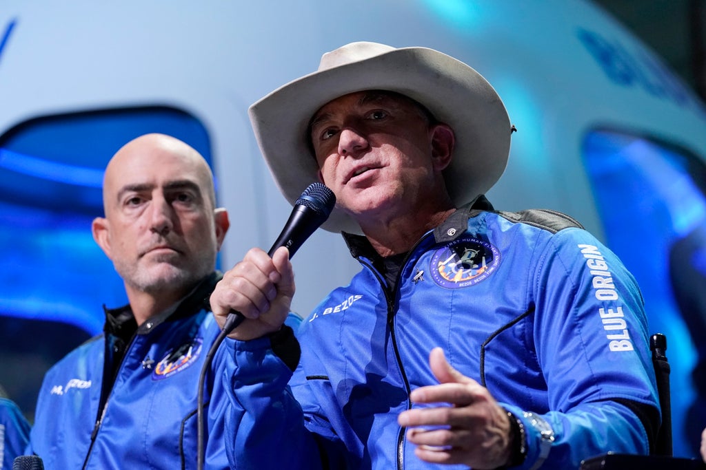 “I want to thank every Amazon employee, and every Amazon customer because you guys paid for all this,” the 57-year-old Bezos said during a news conference Tuesday after becoming the second billionaire in just over a week to ride in his own spacecraft.
