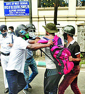 KOLKATA: Cops had to resort to lathicharge to disperse hundreds of police constable job seekers demonstrating outside the state police headquarters at Bhawani Bhavan in Alipore on Monday morning. The protest blocked several key thoroughfares in the heart of south Kolkata, resulting in a traffic logjam across south and central Kolkata for at least two hours.