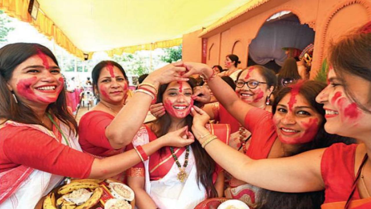 “Nine days of Navratri passed in a jiffy, although for us the main festivities began from the sixth day. So, when it was time for Maa to symbolically leave her mayka (parental home), we all felt the pain that one feels when a daughter of the family leaves to go to her husband’s home. But, before we allowed the tears to well in our eyes, we played a sindoor Holi with Maa. It is basically a symbol of happiness and marital bliss for all. Due to Covid fear, we used sanitiser and played Sindoor Khela only with our kin or closest friends and not with everyone, somethinb we did before Covid happened,” said Kesha Mitra, a homemaker.