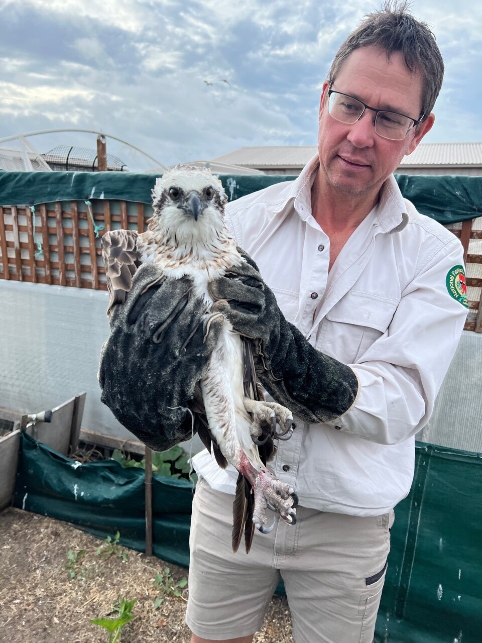 National Parks and Wildlife Service SA district ranger Peter Wilkins retrieved the male osprey and it was treated at a veterinary clinic, where an X-ray ruled out broken bones.