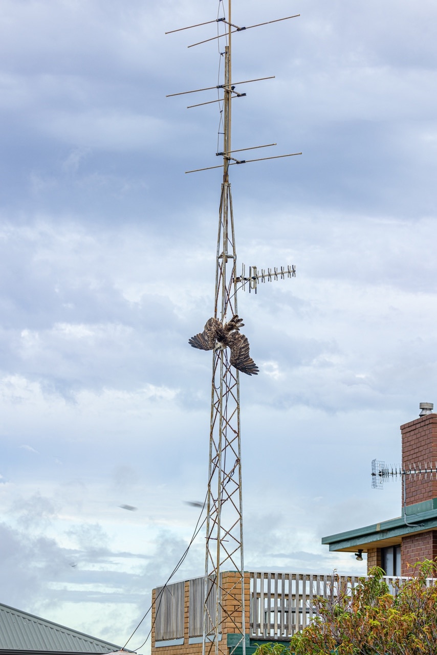 Louth Bay resident Des Fauser said the osprey and its mate roosted a couple of times a week on the antenna tower on a neighbouring property.
