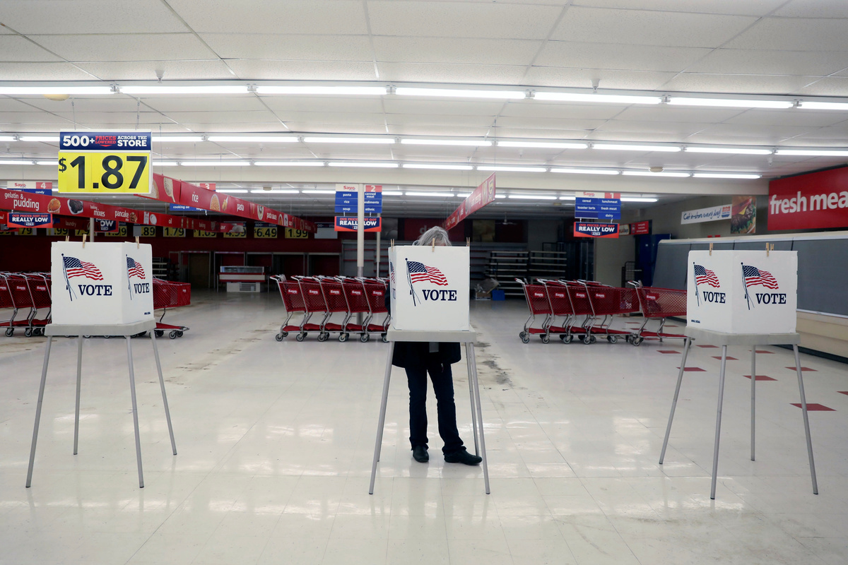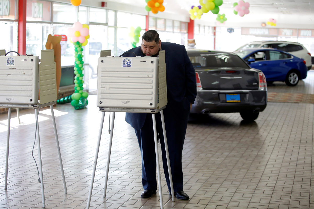 Armed with hand sanitizer in his jacket pocket, Bill Monnin, a 60-year-old bartender who was recently laid off because of a lack of business due to the coronavirus, went to cast his ballot in Chicago.