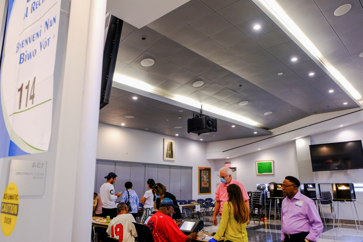 Tracy Finger, 53, wore a face mask as he cast a vote for Sanders in Miami. He said he expected the pandemic would offer the eventual Democratic nominee a political boost given the Trump administration's response, which has drawn criticism for a lack of urgency.