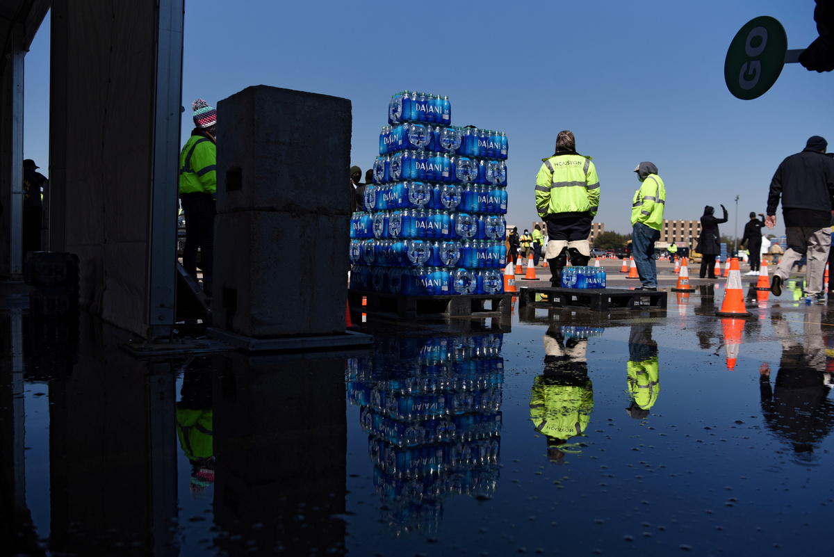 In Houston, officials struck a more optimistic tone after power was restored to most residents and with mass distributions of bottled water under way.