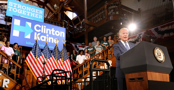 Murphy, who introduced Biden, told the crowd, "Hillary Clinton faced baseless attacks throughout her entire life, and she's never given up. She's been called every name in the book. But I can't wait to call her Madam President."