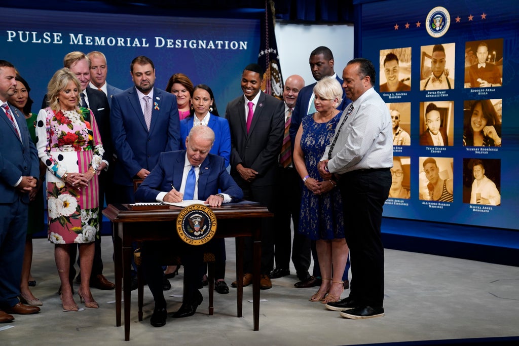 Biden also signed into law Friday a measure that designates the Pulse Nightclub in Orlando, Florida, as a national memorial. A mass shooting at the gay nightclub in June 2016 left 49 people dead and 53 wounded in what was the deadliest attack on the LGBTQ community in U.S. history.