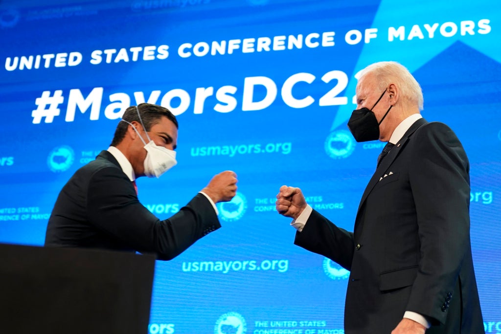 The president's popularity has suffered as inflation has climbed and the coronavirus continues to spread across the country. Biden's efforts to jumpstart hiring and vaccinate the majority of the country have yet to generate much goodwill, prompting him to announce at a Wednesday news conference that he plans to travel outside Washington and take his case directly to voters. By working with mayors, the president is betting he can put more pressure on Congress to act.
