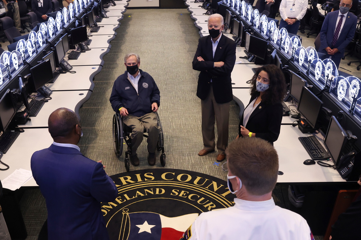 Biden and his wife Jill Biden landed in Houston where he met Republican Governor Greg Abbott and Houston Mayor Sylvester Turner to discuss the recovery from last week’s storm, which caused serious damage to homes and businesses, left millions without power or clean water for days, and killed at least two dozen.