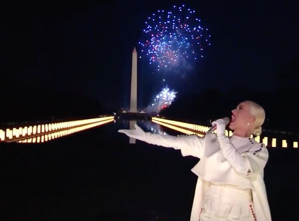 Katy Perry wrapped up the broadcast with a spectacular rendition of her 2010 hit “Firework”, as a real-life fireworks display lit up the sky in the nation’s capital.