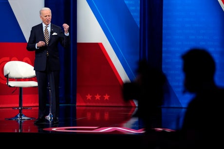 During the town hall, Biden also offered a flavor of the moderate stance that helped win him purple states like Wisconsin in 2020. He resisted a questioner's request for his administration to embrace the progressive goal of forgiving $50,000 in student loan debt, reiterating his commitment to forgiving just $10,000. He suggested one of the ways to improve policing was to provide more funding to police departments, running counter to calls from some progressives to defund the police. He also said he was optimistic about passing legislation to study police reforms.