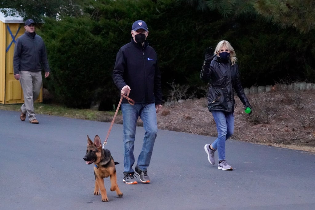 Biden and first lady Jill Biden took the German shepherd on a walk near their second home in Rehoboth Beach, Delaware.