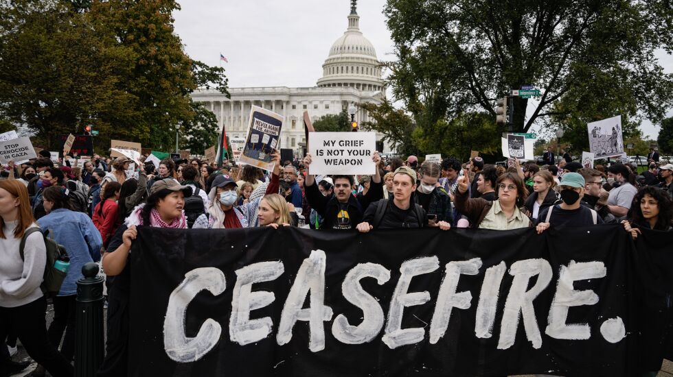 Despite Biden’s assessment, thousands of supporters of the Palestinian cause gathered in downtown Chicago on Wednesday evening, accusing Israel of deliberately attacking the hospital and calling on the U.S. government to end its support of the country.
