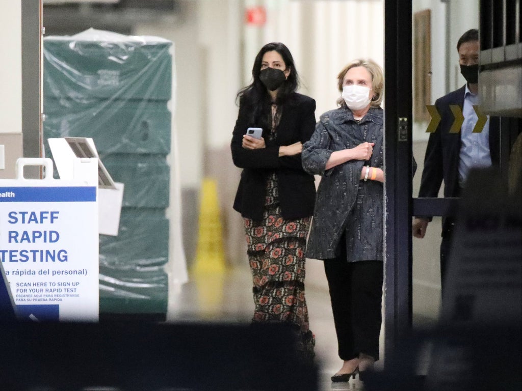 Hillary Clinton visited her husband in hospital on Thursday night, accompanied by her long-term aide Huma Abedin.
