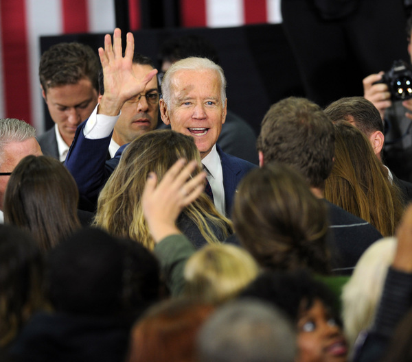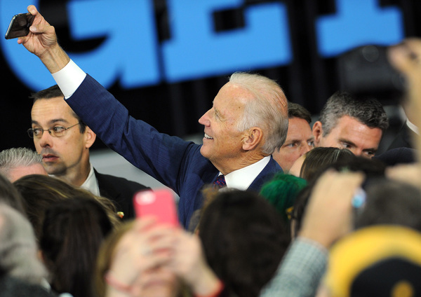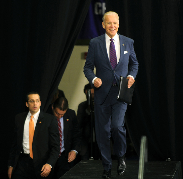 Biden praised Democratic Senate challenger Katie McGinty, whom he hailed for her working-class roots and having "a backbone like a ramrod."
