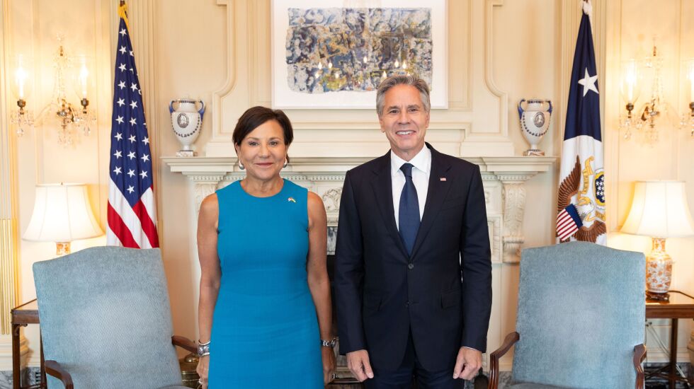 Former Commerce Secretary Penny Pritzker met Wednesday with Secretary of State Tony Blinken at his State Department office. She’s the new U.S. special representative for Ukraine’s economic recovery. (Photo courtesy of the State Department)