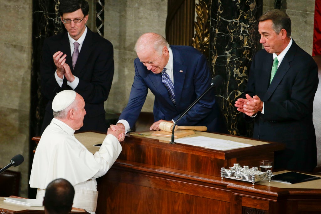 The meeting this coming week will be Biden’s first encounter with Francis since becoming president, but he has met him three times before: first when Francis was inaugurated as pope in 2013; later during the pontiff’s 2015 visit to the U.S.; and in 2016, when Biden visited the Vatican for a conference on regenerative medicine, where he spoke on cancer prevention.