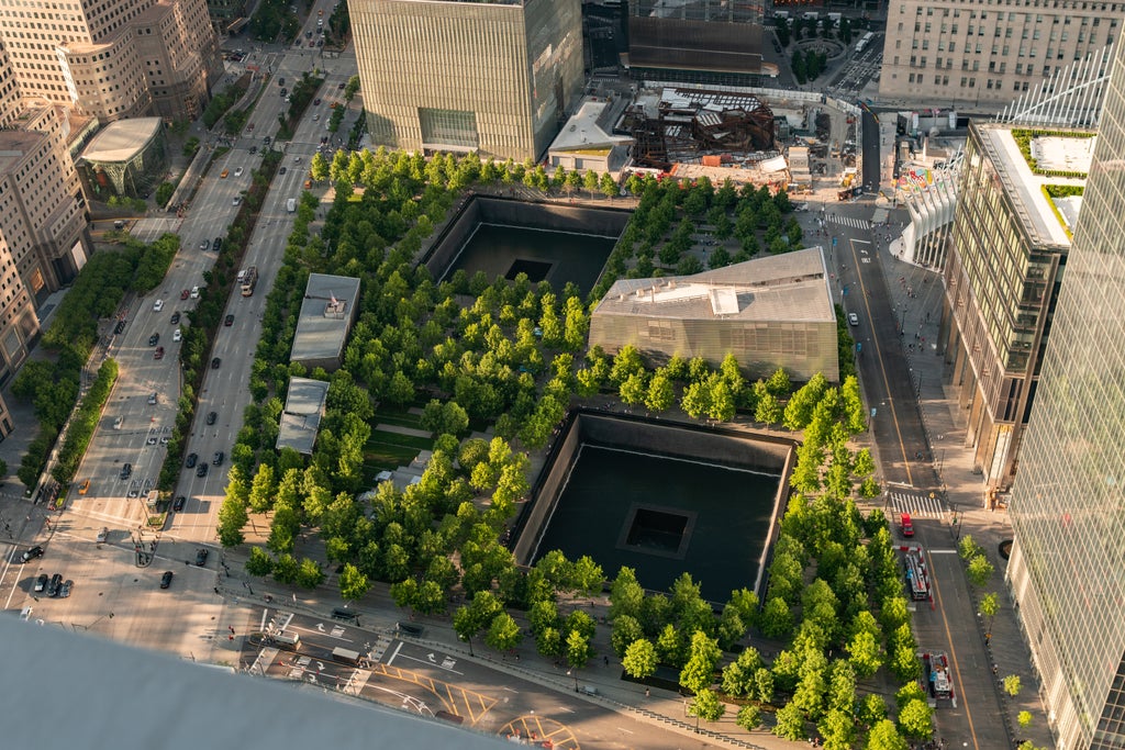 The Obamas’ visit to Lower Manhattan coincided with the opening of the memorial on the site where the twin towers of the World Trade Center once stood.