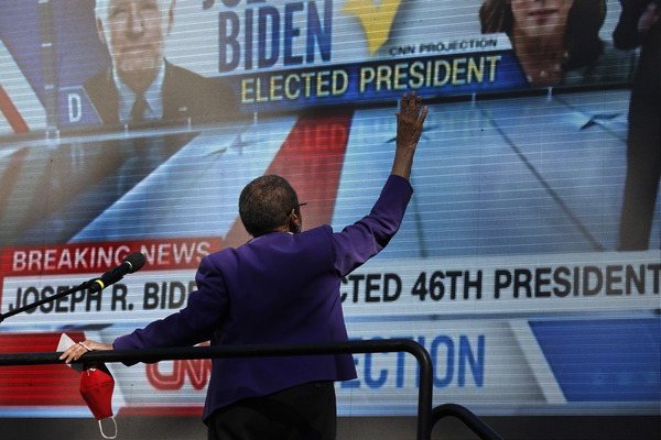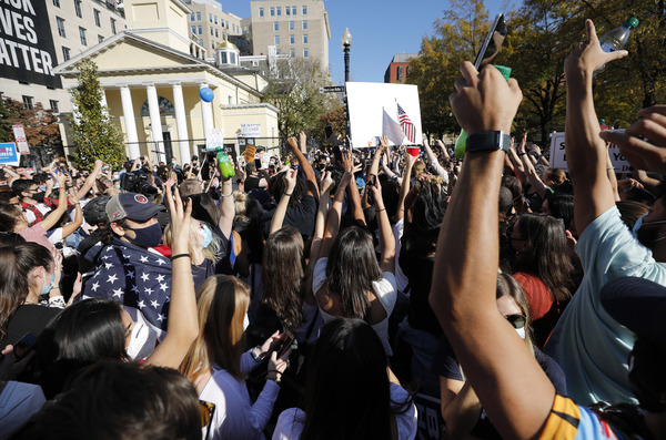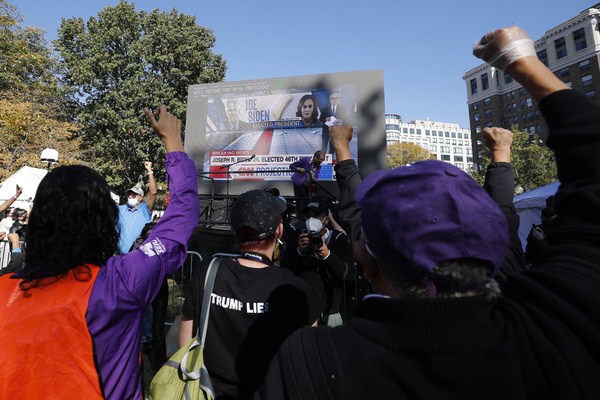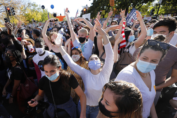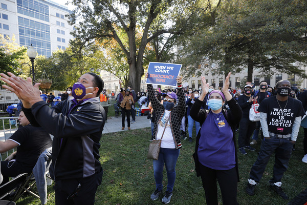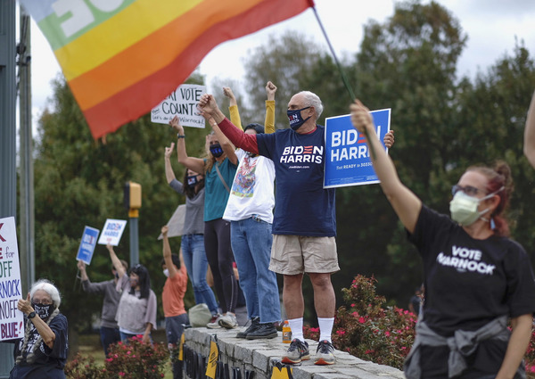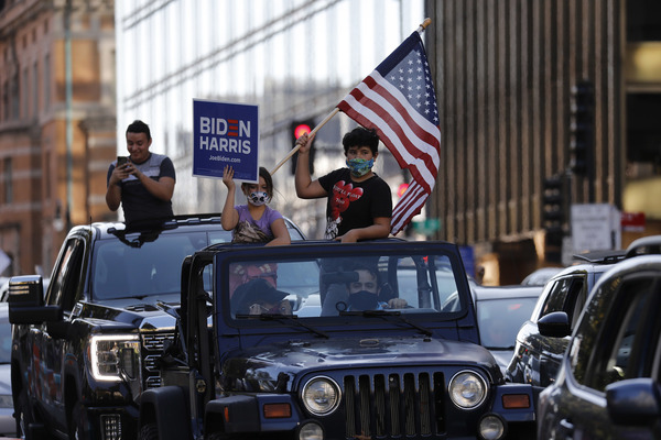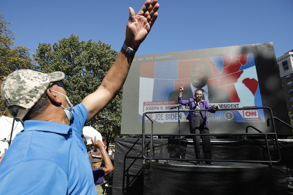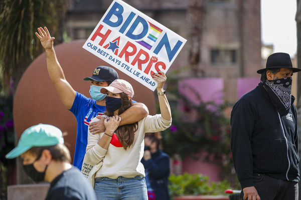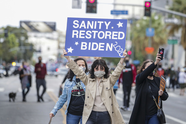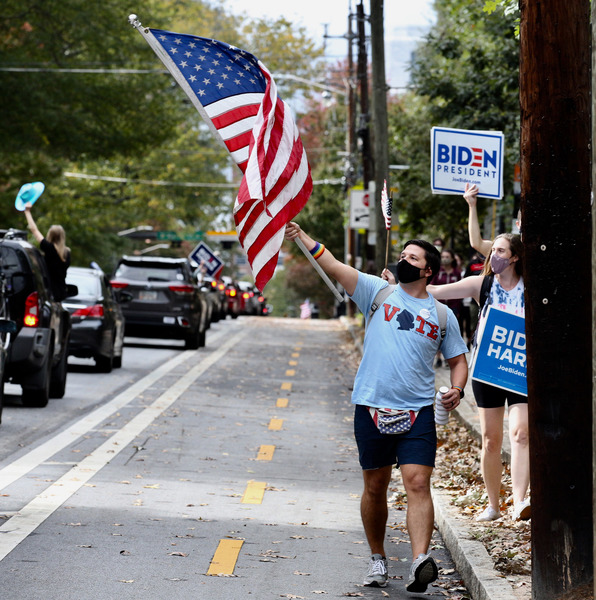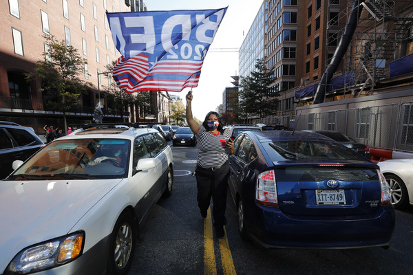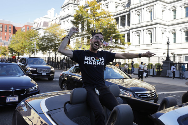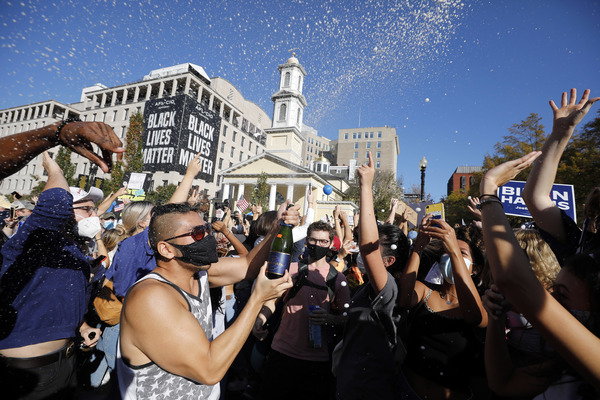 People celebrate after media announced Democratic nominee Joe Biden as President-elect near the White House in Washington, D.C., following the presidential election on Saturday, Nov. 7, 2020. (Yuri Gripas/Abaca Press/TNS)People celebrate after media announced Democratic nominee Joe Biden as President-elect near the White House in Washington, D.C., following the presidential election on Saturday, Nov. 7, 2020. (Yuri Gripas/Abaca Press/TNS)People celebrate near City Hall in downtown Los Angeles following the declaration of victory for President-elect Joe Biden and Vice President Kamala Harris on Saturday, Nov. 7, 2020. (Irfan Khan/Los Angeles Times/TNS)Demonstrators march by boarded-up businesses following a Count Every Vote rally in downtown Dallas as Democratic nominee Joe Biden is named as President-elect following the presidential election, on Saturday, Nov. 7, 2020. (Juan Figueroa/Dallas Morning News/TNS)People celebrate after media announced Democratic nominee Joe Biden as President-elect near the White House in Washington, D.C., following the presidential election on Saturday, Nov. 7, 2020. (Yuri Gripas/Abaca Press/TNS)People celebrate along Santa Monica Boulevard in West Hollywood following the declaration of victory for President-elect Joe Biden and Vice President Kamala Harris on Saturday, Nov. 7, 2020. (Wally Skalij/Los Angeles Times/TNS)Supporters of President-elect Joe Biden take to the streets around Lake Eola in Orlando, Florida, after the election was called for Biden on Saturday, Nov., 7, 2020. (Willie J. Allen Jr./Orlando Sentinel/TNS)U.S. Rep. Eleanor Holmes Norton (D-DC) reacts on stage after media announced Democratic nominee Joe Biden as President-elect near the White House in Washington, D.C., following the presidential election on Saturday, Nov. 7, 2020. (Yuri Gripas/Abaca Press/TNS)People celebrate after media announced Democratic nominee Joe Biden as President-elect near the White House in Washington, D.C., following the presidential election on Saturday, Nov. 7, 2020. (Yuri Gripas/Abaca Press/TNS)People celebrate after media announced Democratic nominee Joe Biden as President-elect near the White House in Washington, D.C., following the presidential election on Saturday, Nov. 7, 2020. (Kent Nishimura/Los Angeles Times/TNS)People celebrate after media announced Democratic nominee Joe Biden as President-elect near the White House in Washington, D.C., following the presidential election on Saturday, Nov. 7, 2020. (Kent Nishimura/Los Angeles Times/TNS)An activist stands next to an inflatable rat depicted as President Donald Trump is seen after media announced Democratic nominee Joe Biden as President-elect during a watch party rally following the presidential election, near the White House in Washington, D.C., on Saturday, Nov. 7, 2020. (Yuri Gripas/Abaca Press/TNS)People celebrate along Santa Monica Boulevard in West Hollywood following the declaration of victory for President-elect Joe Biden and Vice President Kamala Harris on Saturday, Nov. 7, 2020. (Wally Skalij/Los Angeles Times/TNS)Supporters celebrate near Trump International Hotel & Tower in Chicago following the declaration of victory for President-elect Joe Biden and Vice President Kamala Harris on Saturday, Nov. 7, 2020. (Abel Uribe/Chicago Tribune/TNS)People celebrate in the streets of Philadelphia following the declaration of victory for President-elect Joe Biden and Vice President-elect Kamala Harris on Saturday, Nov. 7, 2020. (Luis Sinco/Los Angeles Times/TNS)Evan Sagadencky joins the celebration near City Hall in downtown Los Angeles following the declaration of victory for President-elect Joe Biden and Vice President Kamala Harris on Saturday, Nov. 7, 2020. (Irfan Khan/Los Angeles Times/TNS)People celebrate near the White House in Washington, D.C., after President-elect Joe Biden is declared the winner of the presidential election on Saturday, Nov. 7, 2020. (Kent Nishimura/Los Angeles Times/TNS)People celebrate after media announced Democratic nominee Joe Biden as President-elect near the White House in Washington, D.C., following the presidential election on Saturday, Nov. 7, 2020. (Yuri Gripas/Abaca Press/TNS)People celebrate in Atlanta as Democratic nominee Joe Biden is named as President-elect following the presidential election, on Saturday, Nov. 7, 2020. (Ben Gray/Atlanta Journal-Constitution/TNS)U.S. Rep. Eleanor Holmes Norton (D-DC) reacts after media announced Democratic nominee Joe Biden as President-elect near the White House in Washington, D.C., following the presidential election on Saturday, Nov. 7, 2020. (Yuri Gripas/Abaca Press/TNS)Unite Hhere! volunteer Rebecca Osmman, 23, celebrates outside Independence Hall in Philadelphia following the declaration of victory for President-elect Joe Biden and Vice President Kamala Harris on Saturday, Nov. 7, 2020. (Luis Sinco/Los Angeles Times/TNS)Demonstrators march back to City Hall following a Count Every Vote rally in downtown Dallas as Democratic nominee Joe Biden is named as President-elect following the presidential election, on Saturday, Nov. 7, 2020. (Juan Figueroa/Dallas Morning News/TNS)People celebrate along Santa Monica Boulevard in West Hollywood following the declaration of victory for President-elect Joe Biden and Vice President Kamala Harris on Saturday, Nov. 7, 2020. (Wally Skalij/Los Angeles Times/TNS)People celebrate along Santa Monica Boulevard in West Hollywood following the declaration of victory for President-elect Joe Biden and Vice President Kamala Harris on Saturday, Nov. 7, 2020. (Wally Skalij/Los Angeles Times/TNS)Congresswoman-elect Nikema Williams, right, gets a hug from a sorority sister of Alpha Kappa Alpha after the election was called for Joe Biden at the John Lewis mural on Saturday, Nov. 7, 2020 in Atlanta, Georgia. (Steve Schaefer/Atlanta Journal-Constitution/TNS)Supporters celebrate near Trump International Hotel & Tower in Chicago following the declaration of victory for President-elect Joe Biden and Vice Pre