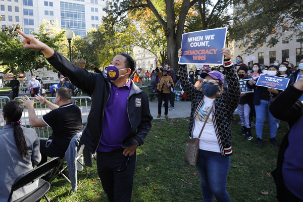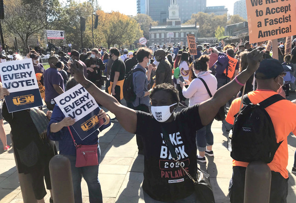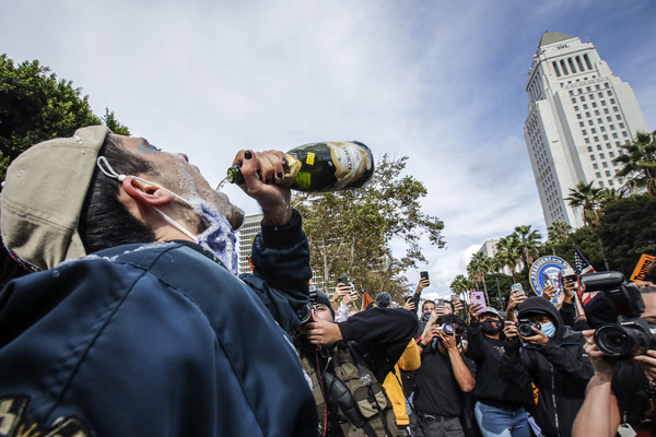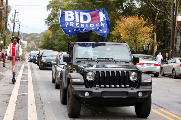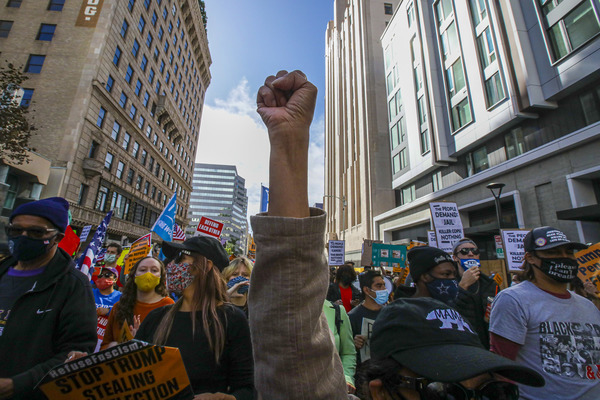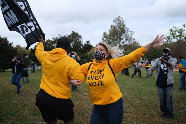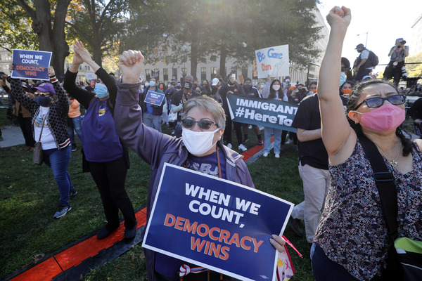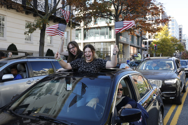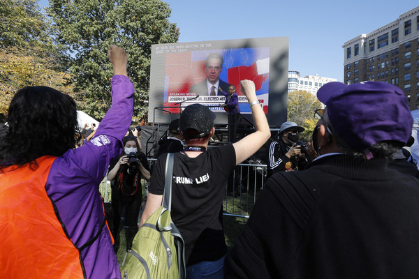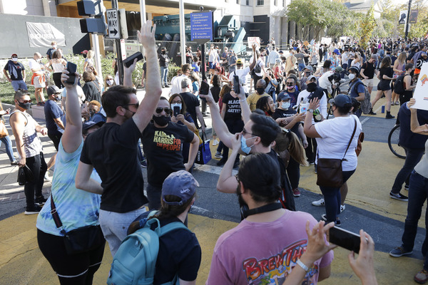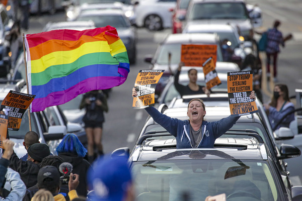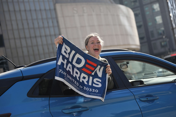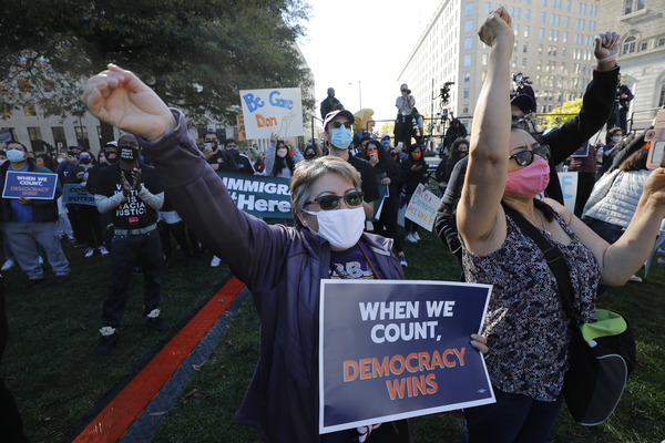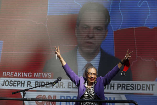 People celebrate after media announced Democratic nominee Joe Biden as President-elect near the White House in Washington, D.C., following the presidential election on Saturday, Nov. 7, 2020. (Yuri Gripas/Abaca Press/TNS)People celebrate after media announced Democratic nominee Joe Biden as President-elect near the White House in Washington, D.C., following the presidential election on Saturday, Nov. 7, 2020. (Yuri Gripas/Abaca Press/TNS)People celebrate near City Hall in downtown Los Angeles following the declaration of victory for President-elect Joe Biden and Vice President Kamala Harris on Saturday, Nov. 7, 2020. (Irfan Khan/Los Angeles Times/TNS)Demonstrators march by boarded-up businesses following a Count Every Vote rally in downtown Dallas as Democratic nominee Joe Biden is named as President-elect following the presidential election, on Saturday, Nov. 7, 2020. (Juan Figueroa/Dallas Morning News/TNS)People celebrate after media announced Democratic nominee Joe Biden as President-elect near the White House in Washington, D.C., following the presidential election on Saturday, Nov. 7, 2020. (Yuri Gripas/Abaca Press/TNS)People celebrate along Santa Monica Boulevard in West Hollywood following the declaration of victory for President-elect Joe Biden and Vice President Kamala Harris on Saturday, Nov. 7, 2020. (Wally Skalij/Los Angeles Times/TNS)Supporters of President-elect Joe Biden take to the streets around Lake Eola in Orlando, Florida, after the election was called for Biden on Saturday, Nov., 7, 2020. (Willie J. Allen Jr./Orlando Sentinel/TNS)U.S. Rep. Eleanor Holmes Norton (D-DC) reacts on stage after media announced Democratic nominee Joe Biden as President-elect near the White House in Washington, D.C., following the presidential election on Saturday, Nov. 7, 2020. (Yuri Gripas/Abaca Press/TNS)People celebrate after media announced Democratic nominee Joe Biden as President-elect near the White House in Washington, D.C., following the presidential election on Saturday, Nov. 7, 2020. (Yuri Gripas/Abaca Press/TNS)People celebrate after media announced Democratic nominee Joe Biden as President-elect near the White House in Washington, D.C., following the presidential election on Saturday, Nov. 7, 2020. (Kent Nishimura/Los Angeles Times/TNS)People celebrate after media announced Democratic nominee Joe Biden as President-elect near the White House in Washington, D.C., following the presidential election on Saturday, Nov. 7, 2020. (Kent Nishimura/Los Angeles Times/TNS)An activist stands next to an inflatable rat depicted as President Donald Trump is seen after media announced Democratic nominee Joe Biden as President-elect during a watch party rally following the presidential election, near the White House in Washington, D.C., on Saturday, Nov. 7, 2020. (Yuri Gripas/Abaca Press/TNS)People celebrate along Santa Monica Boulevard in West Hollywood following the declaration of victory for President-elect Joe Biden and Vice President Kamala Harris on Saturday, Nov. 7, 2020. (Wally Skalij/Los Angeles Times/TNS)Supporters celebrate near Trump International Hotel & Tower in Chicago following the declaration of victory for President-elect Joe Biden and Vice President Kamala Harris on Saturday, Nov. 7, 2020. (Abel Uribe/Chicago Tribune/TNS)People celebrate in the streets of Philadelphia following the declaration of victory for President-elect Joe Biden and Vice President-elect Kamala Harris on Saturday, Nov. 7, 2020. (Luis Sinco/Los Angeles Times/TNS)Evan Sagadencky joins the celebration near City Hall in downtown Los Angeles following the declaration of victory for President-elect Joe Biden and Vice President Kamala Harris on Saturday, Nov. 7, 2020. (Irfan Khan/Los Angeles Times/TNS)People celebrate near the White House in Washington, D.C., after President-elect Joe Biden is declared the winner of the presidential election on Saturday, Nov. 7, 2020. (Kent Nishimura/Los Angeles Times/TNS)People celebrate after media announced Democratic nominee Joe Biden as President-elect near the White House in Washington, D.C., following the presidential election on Saturday, Nov. 7, 2020. (Yuri Gripas/Abaca Press/TNS)People celebrate in Atlanta as Democratic nominee Joe Biden is named as President-elect following the presidential election, on Saturday, Nov. 7, 2020. (Ben Gray/Atlanta Journal-Constitution/TNS)U.S. Rep. Eleanor Holmes Norton (D-DC) reacts after media announced Democratic nominee Joe Biden as President-elect near the White House in Washington, D.C., following the presidential election on Saturday, Nov. 7, 2020. (Yuri Gripas/Abaca Press/TNS)Unite Hhere! volunteer Rebecca Osmman, 23, celebrates outside Independence Hall in Philadelphia following the declaration of victory for President-elect Joe Biden and Vice President Kamala Harris on Saturday, Nov. 7, 2020. (Luis Sinco/Los Angeles Times/TNS)Demonstrators march back to City Hall following a Count Every Vote rally in downtown Dallas as Democratic nominee Joe Biden is named as President-elect following the presidential election, on Saturday, Nov. 7, 2020. (Juan Figueroa/Dallas Morning News/TNS)People celebrate along Santa Monica Boulevard in West Hollywood following the declaration of victory for President-elect Joe Biden and Vice President Kamala Harris on Saturday, Nov. 7, 2020. (Wally Skalij/Los Angeles Times/TNS)People celebrate along Santa Monica Boulevard in West Hollywood following the declaration of victory for President-elect Joe Biden and Vice President Kamala Harris on Saturday, Nov. 7, 2020. (Wally Skalij/Los Angeles Times/TNS)Congresswoman-elect Nikema Williams, right, gets a hug from a sorority sister of Alpha Kappa Alpha after the election was called for Joe Biden at the John Lewis mural on Saturday, Nov. 7, 2020 in Atlanta, Georgia. (Steve Schaefer/Atlanta Journal-Constitution/TNS)Supporters celebrate near Trump International Hotel & Tower in Chicago following the declaration of victory for President-elect Joe Biden and Vice Pre