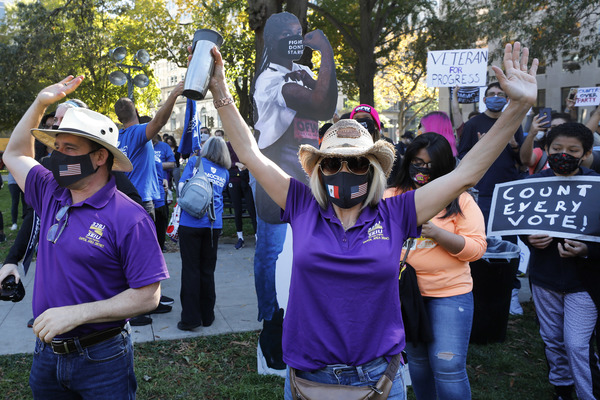 Hundreds of Trump supporters gathered at the Arizona Capitol to raise questions about the results of the election. They waved Trump flags and chanted "USA" as state GOP Chairwoman Kelli Ward said she "won't rest" until every legal vote is counted for Trump.