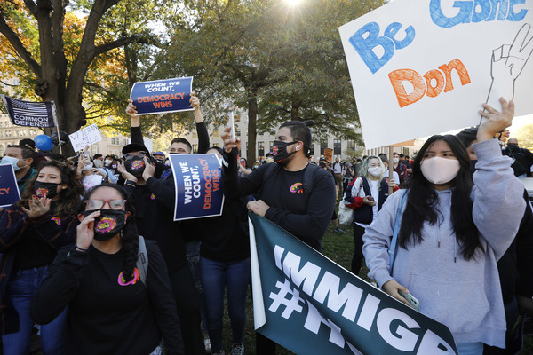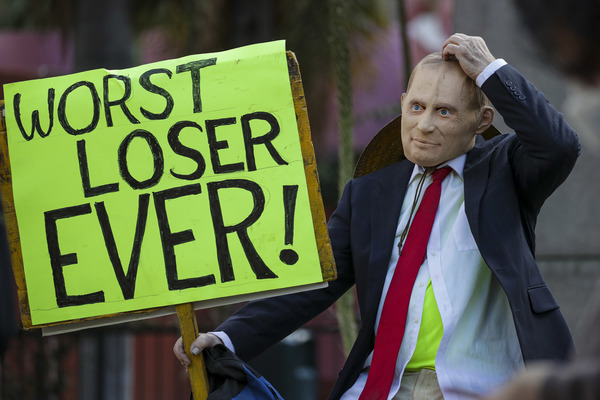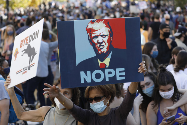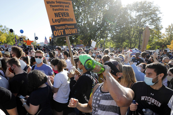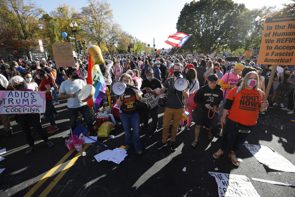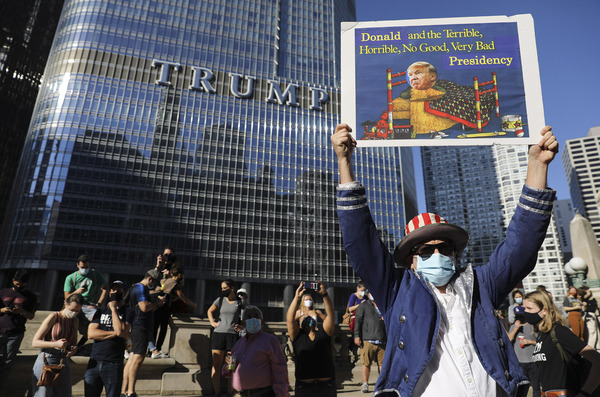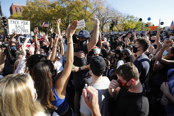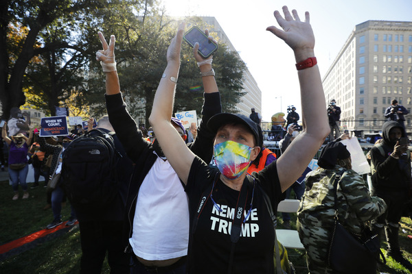 A crowd gathered outside Trump Tower in Manhattan, with people shouting, "You are fired!" In Lansing, Michigan, the president's backers converged on the capitol in a state that the president-elect flipped back to the Democrats. Dozens of Trump supporters marched toward the Supreme Court in Washington for a "Stop the Steal" rally to bolster his false claims of a rigged election. And residents of Chicago, a city derided by Trump, honked horns, danced in the streets, banged pots and shot off fireworks.