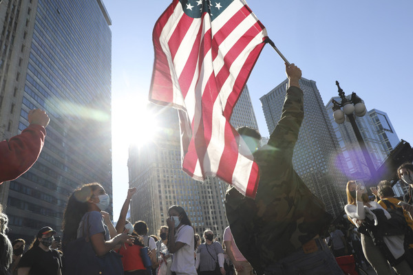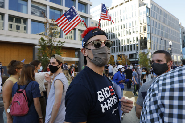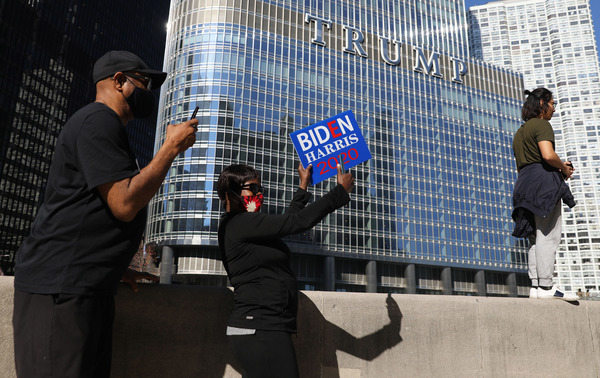 Back in New York, on the corner of 55th Street and Fifth Avenue, at least 50 people gathered to wave American flags, some wearing Biden-Harris masks and T-shirts. It was the closest they could get to Trump Tower, which was barricaded from pedestrians.