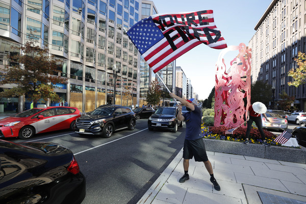 At the U.S. Capitol, dozens of Trump supporters bearing flags and other gear marched around the grounds. The group chanted "America First" and "Stop the Steal." Biden supporters heckled the marchers, shouting "Bye!" and occasional epithets. Some marchers stopped at the foot of the Capitol for a prayer vigil; few would speak to a reporter.