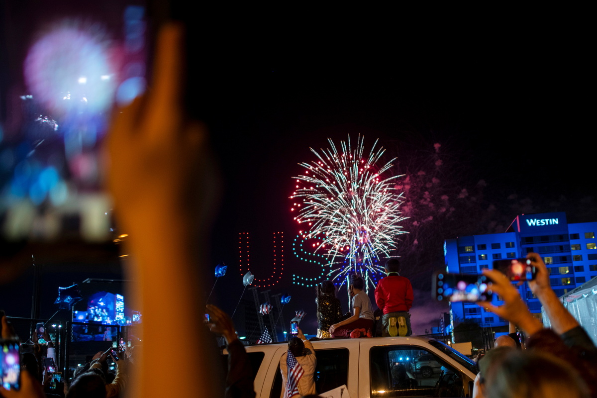 As the news of his win broke, cheers and applause were heard around Washington, with people emerging onto balconies, honking car horns and banging pots. Throngs of people streamed to the White House to rejoice outside a security fence as the sound of fireworks boomed in the distance.