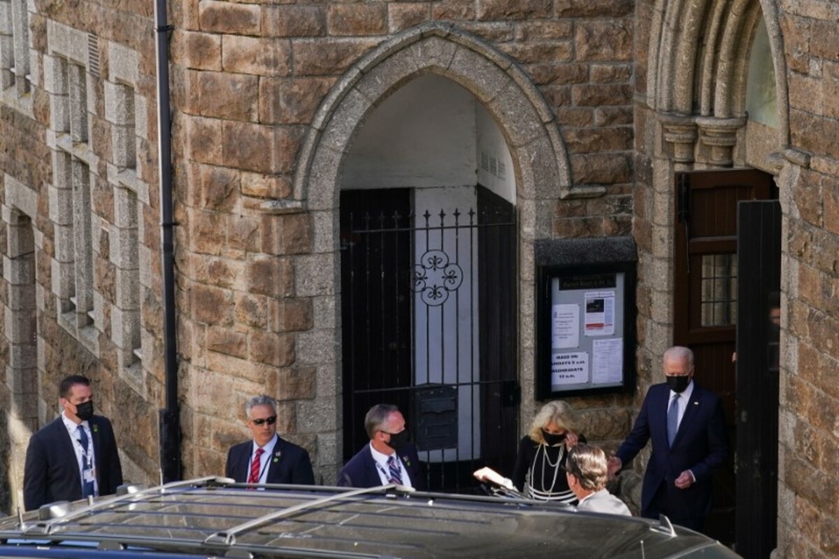 After leaving mass, Biden escorted his wife to her own vehicle before he returned to his, heading for the summit in the nearby village of Carbis Bay.