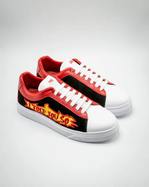 Known only as the BBB, the lowtop lifestyle sneaker features a shape recognizable from the Superstar, only without three stripes or the signature shell toe. It’s debut comes in four color schemes, each with different logo arrangements, including an $895 version with massive “I Told You So” embroidery.