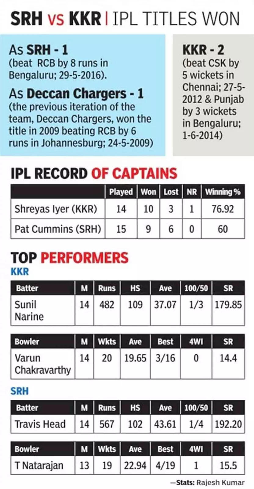 KKR will face Sunrisers Hyderabad in the IPL 2024 final on Sunday in Chennai. They have won both their previous encounters against SRH this year and aim to repeat their success in the summit clash.