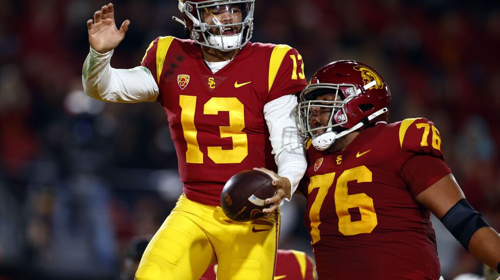 No. 15 Notre Dame (+5) at No. 6 USC (6:30 p.m., Ch. 7, 780-AM): The Irish have had the Jewelled Shillelagh since pummeling USC in 2017 — running a head-to-head winning streak to four for the first time since the early 1990s — but now they’re in Caleb Williams’ house. With a big night and an 11th “W,” the Trojans’ sensational QB probably locks up the Heisman Trophy. Time to give back that shillelagh, whatever the heck it is. Fight On, 34-27.