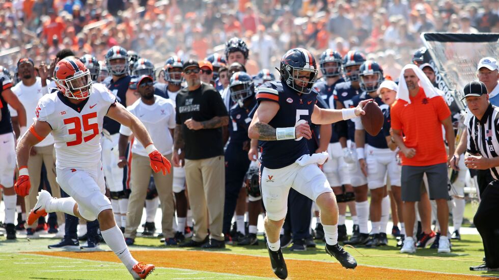 Virginia (+4) at Illinois (3 p.m., ESPNU) is a rematch the Illini (1-1) are capable of winning. As you can see, they’re favored to do just that. The line puzzles me, though. Weren’t the Illini outgained by more than 200 yards in last year’s matchup? Don’t the Cavaliers (1-0) still have dual-threat lefty quarterback Brennan Armstrong, the school’s career leader in total offense with over 8,000 yards? Hasn’t UVA finished with a better record than Illinois five seasons in a row?