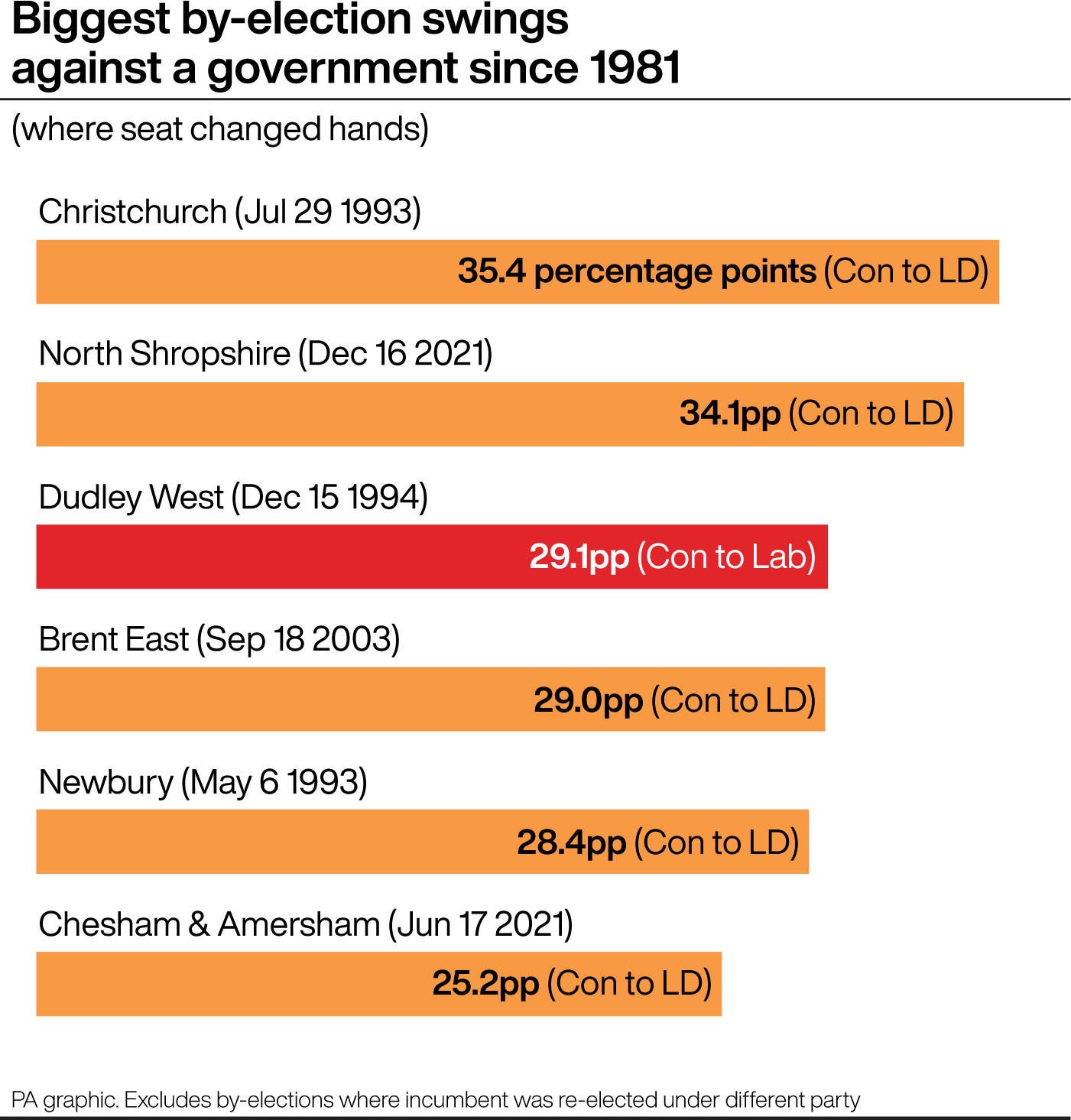 – Christchurch (July 29 1993): 35.4 percentage point (pp) swing from Conservative to Liberal Democrat